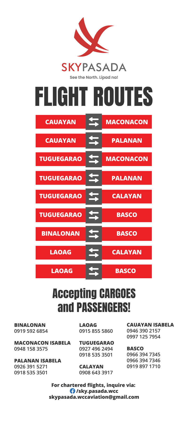 Route Map North Luzon Route You May Also Want To SeeWelcome to the Philippines’ strikingly diverse destinations. Travel up north for an experience of exhilarating moments! Basco, BatanesLearn More Tuguegarao, CagayanLearn More Cauayan, IsabelaLearn More Maconacon, IsabelaLearn More Palanan, IsabelaLearn More Laoag, Ilocos NorteLearn More Baguio CityLearn More Binalonan, PangasinanLearn More Calayan, CagayanLearn More 45